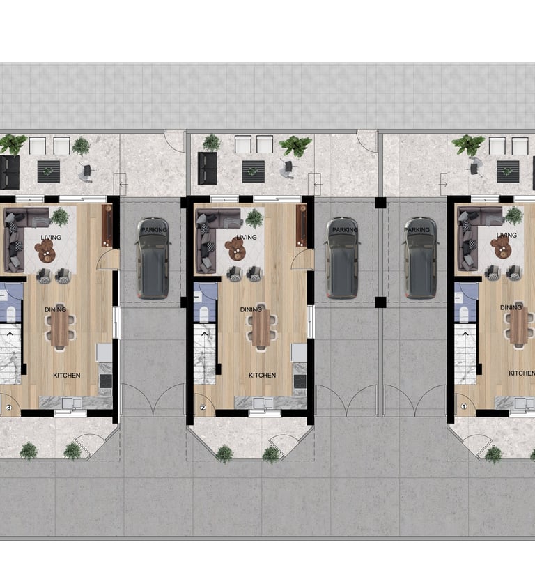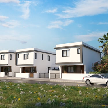 Discover serenity at Oroklini Hills, where our delightful 3-bedroom, 2-bathroom home awaits. These cozy residences will boast a spacious living area with large windows that welcome in abundant natural light, accentuating the elegant tile flooring throughout.